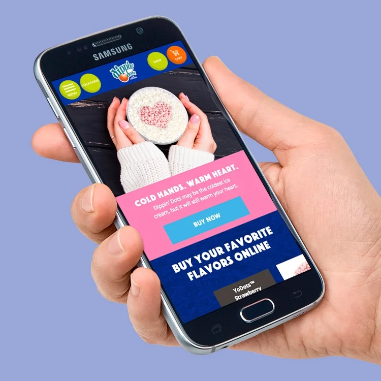 Project Description: Dippin' Dots is known as the ice cream of the future and kids across the country love them! You can find them at stadiums, zoos, gas stations and malls across the country Yes, this site design is a kitschy, but so is the brand. The design of the website needed to match the fun, crazy branding of the stores.